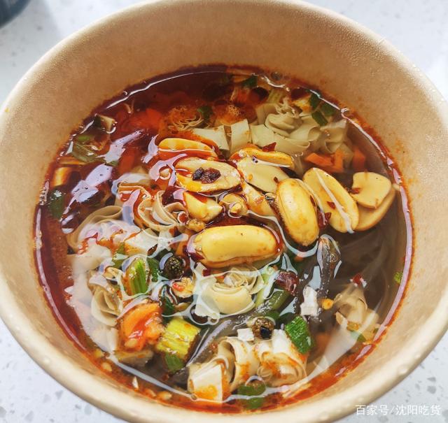 酸辣粉里面是深色的紅薯粉,豆皮、麻辣花生一放,酸辣過癮,在工作室加班的時(shí)候來一碗,別提多幸福啦!